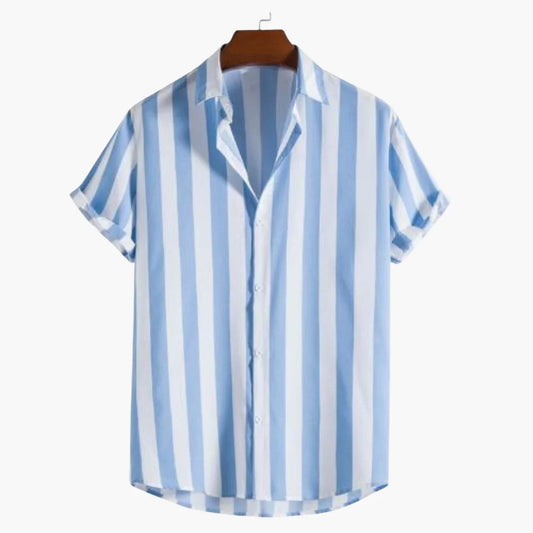 Stripet kortermet skjorte med krage til herre